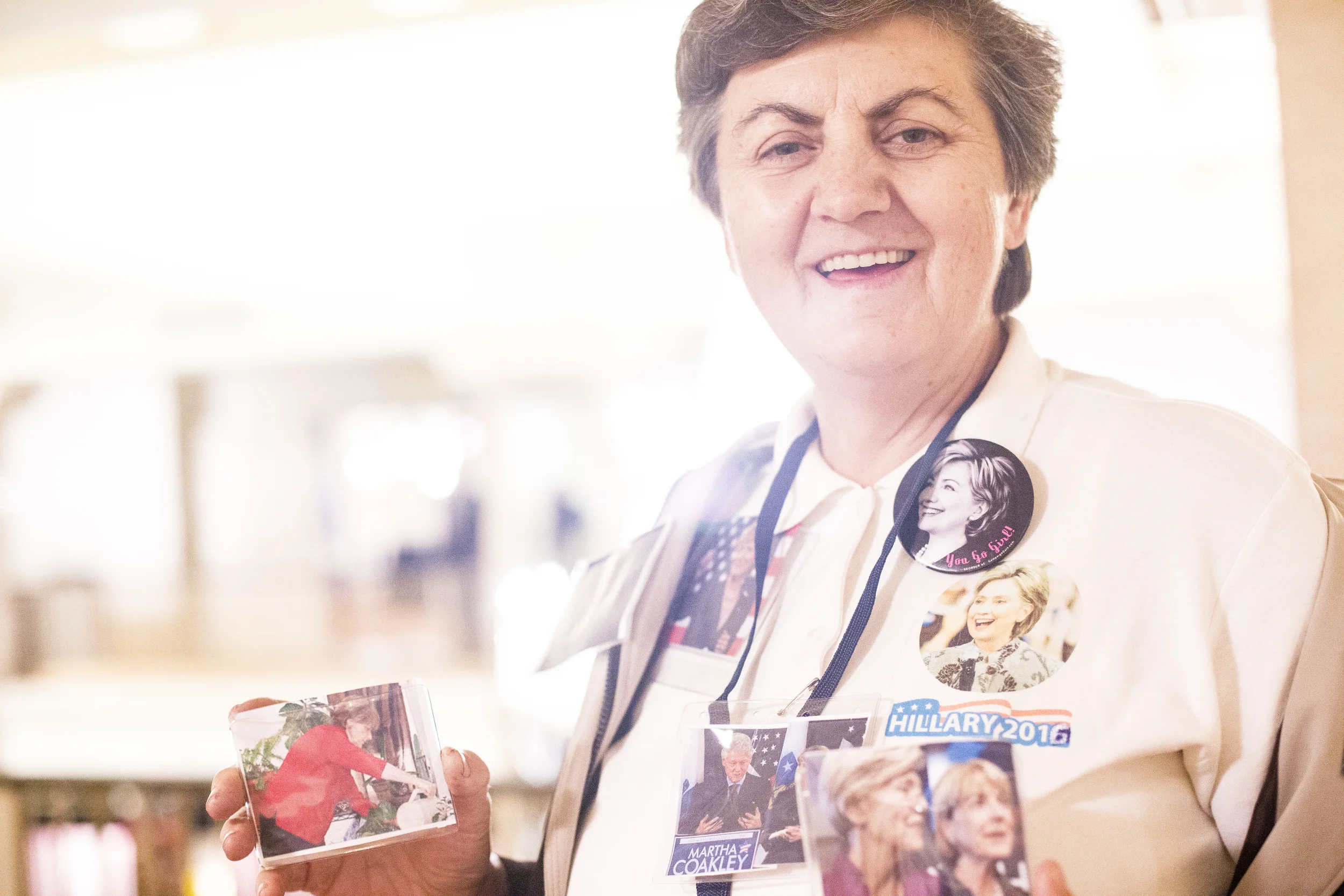 Fitima Kunduklija, 60, big fan of Martha COakley and Hillary Clinton. She has custom made her shirt for Hillary Clinton. Photo by Ann Wang