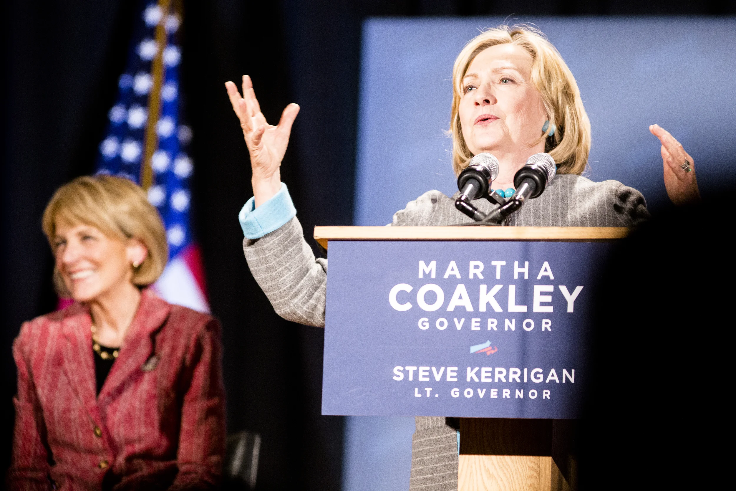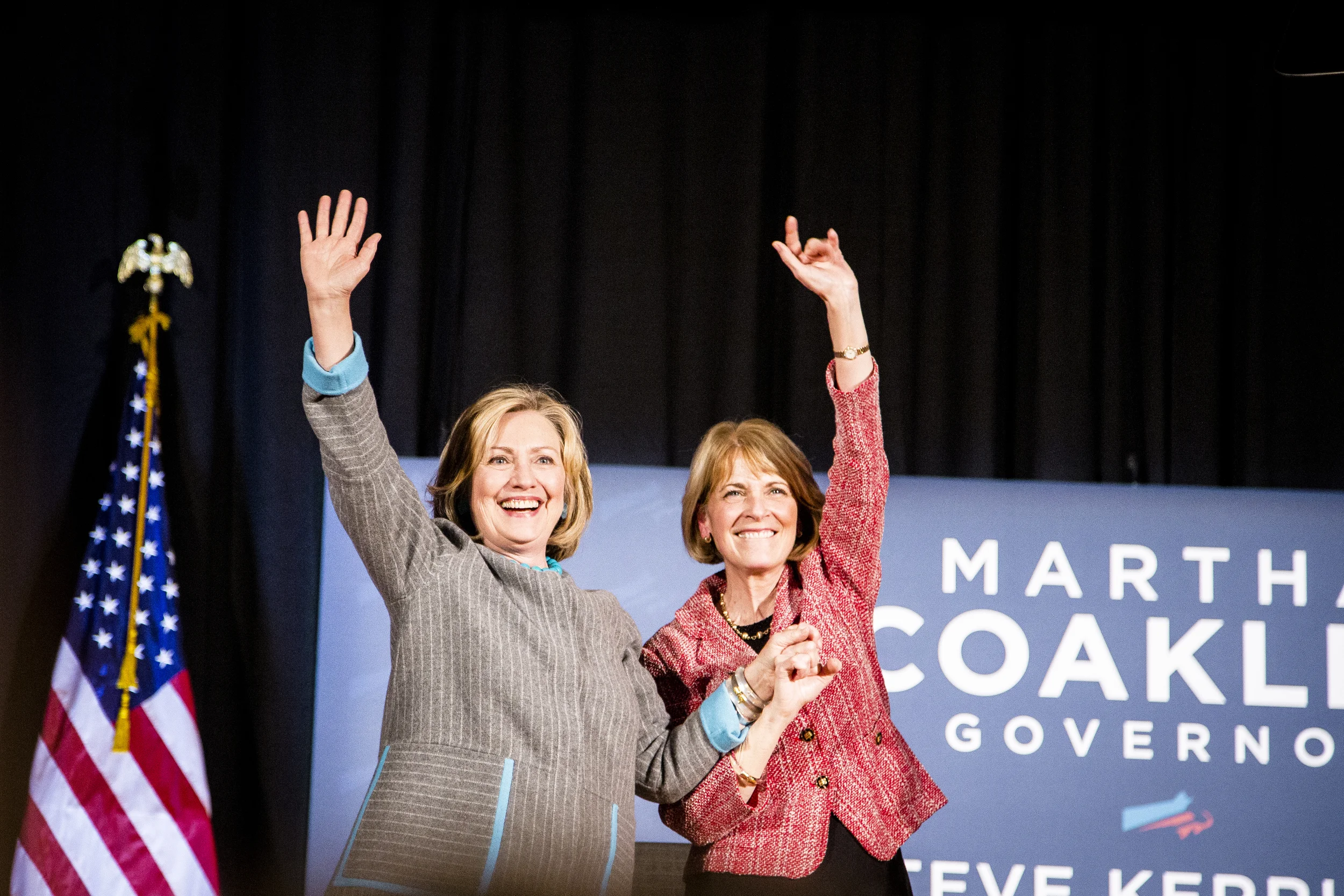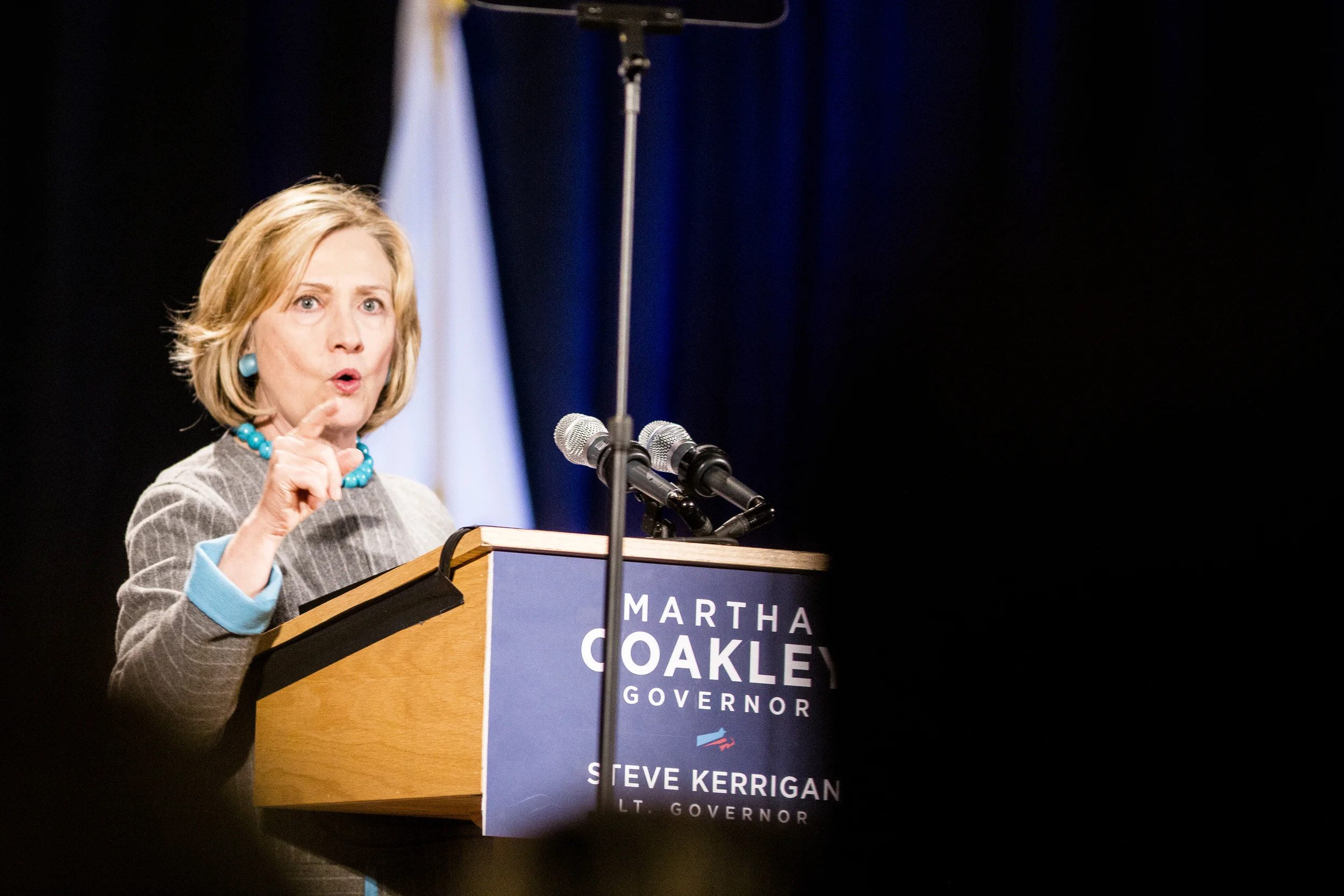 Former secretary of state Hillary Clinton joins Martha Coakley for a campaign rally at Boston Park Plaza on the 24th of October, 2014. Photo By Ann Wang